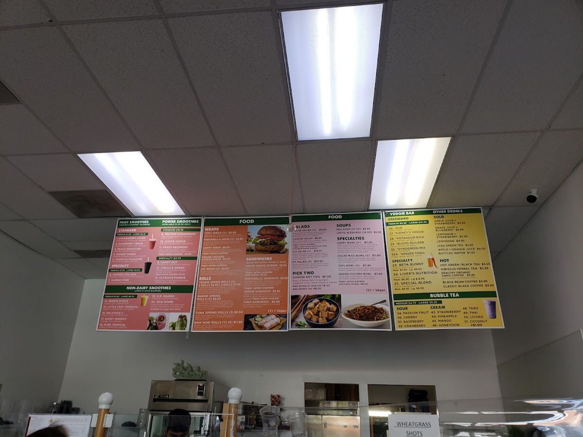 The menu also boasts specialty power smoothies, such as the Miracle Green Smoothie that combines organic miracle greens with tropical flavors, all for just $16.00. For those opting for something lighter, they offer a variety of cold drinks like apple strawberry juice and iced green tea.