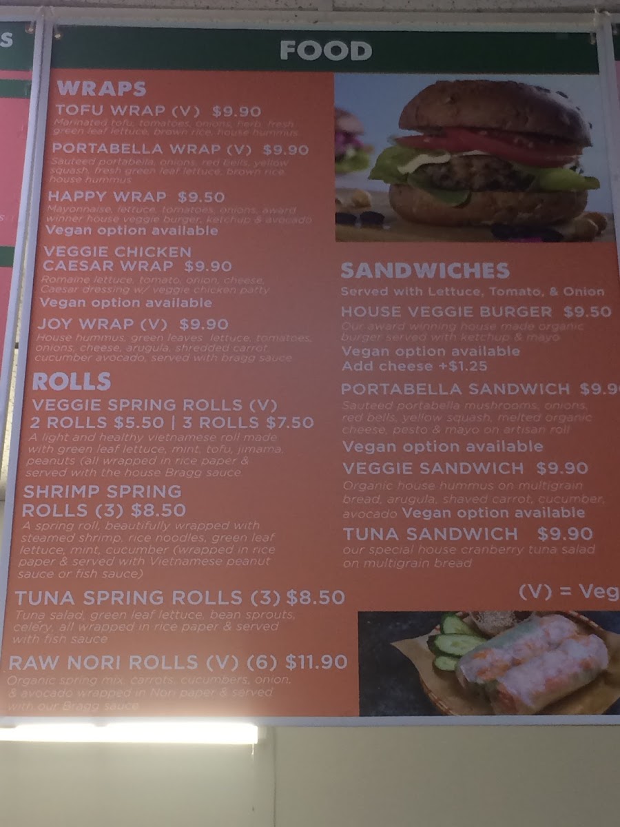6 pieces. Organic spring mix, carrots, cucumbers, onion, and avocado wrapped in nori paper and served with our bragg wasabi sauce.